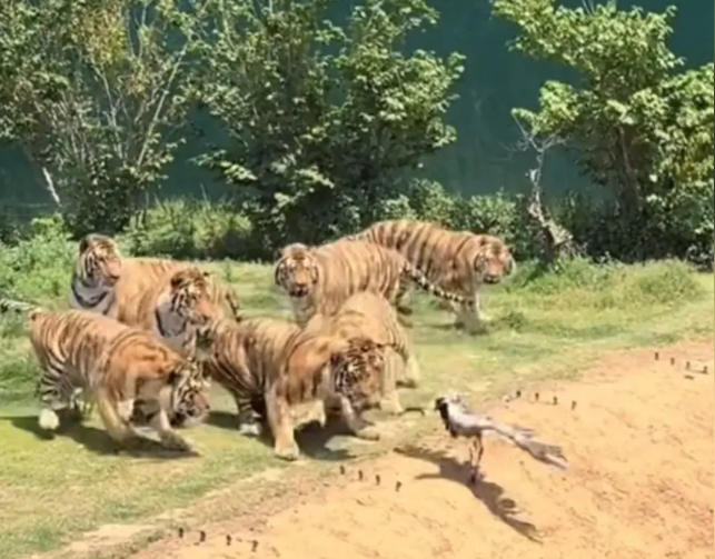 據陸媒《新京報》報導,這起事件發生在山東省德州市的「泉城歐樂堡動物王國」。5月24日有遊客目擊一隻鶴落在老虎區的水池飲水,很快引起園區內眾多老虎的注意,這隻鶴在眾多老虎的包圍下,被逼到水池畔一處邊坡,雖然牠不斷張開翅膀做勢恫嚇逼近的虎群,但最終在7隻老虎的圍獵下命喪虎口。