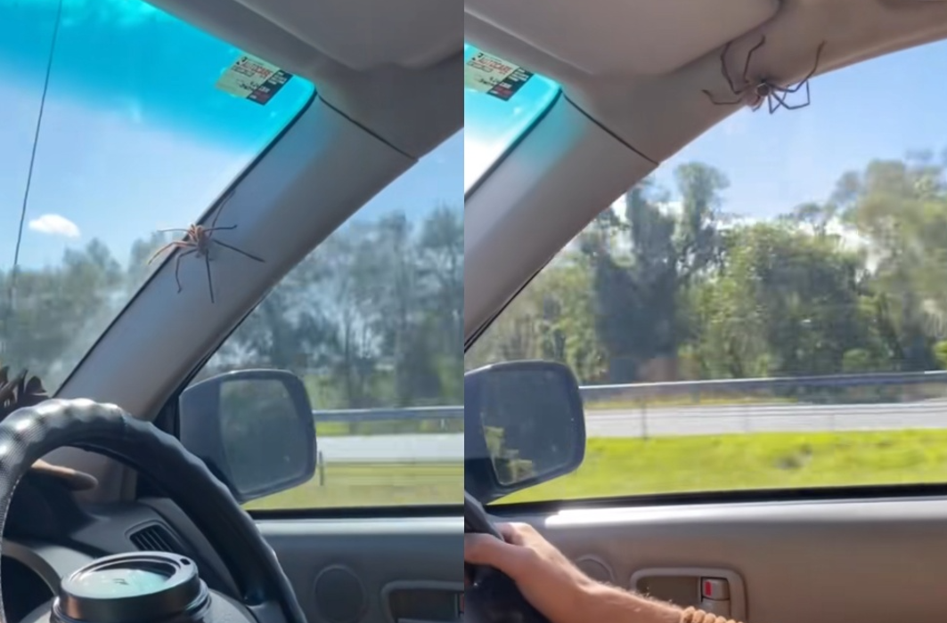 澳洲一名男子在網路上分享,他坐駕駛座上正在開車時,一隻超巨大蜘蛛突然闖進車內,還緩緩朝他的方向移動,然而他卻能保持冷靜繼續開車,11秒影片爆紅。