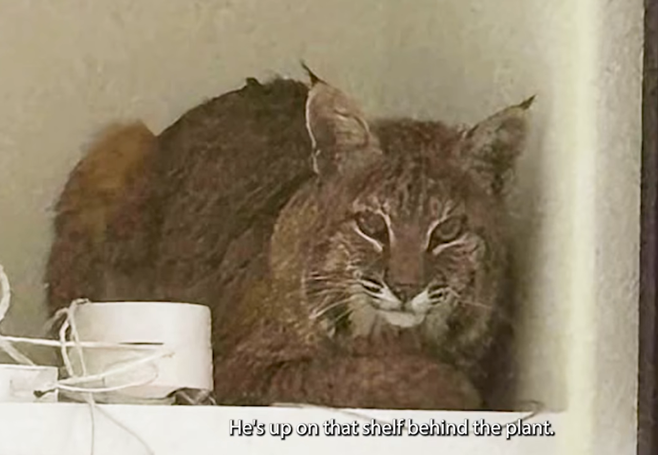 雪莉住在科羅拉多州的山區,不久前的晚上她準備入睡時,發現自家飼養的貓咪肉丸還沒有回家,於是留了門給肉丸,而這扇門確實讓肉丸順利回家了,不過雪莉凌晨4點被撞擊聲吵醒,她發現有隻山貓在自家的客廳層架上閒晃。