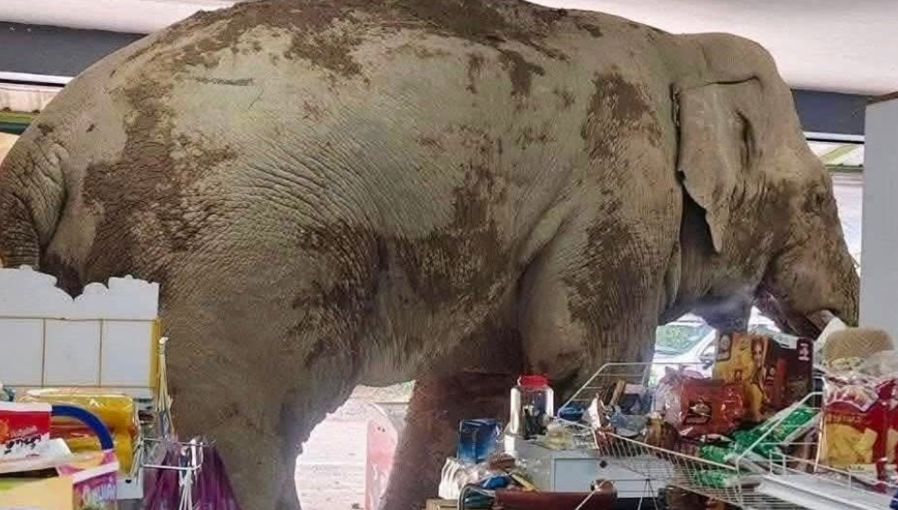 泰國呵叻府傳出一頭大象竟然闖進便利商店,巨大的身形幾乎快把整間店都塞滿,然而大象卻像沒事一樣,悠閒地在店內閒逛、挑選食物,開心吃了一大堆脆米餅零食和雞蛋後才心滿意足離開。