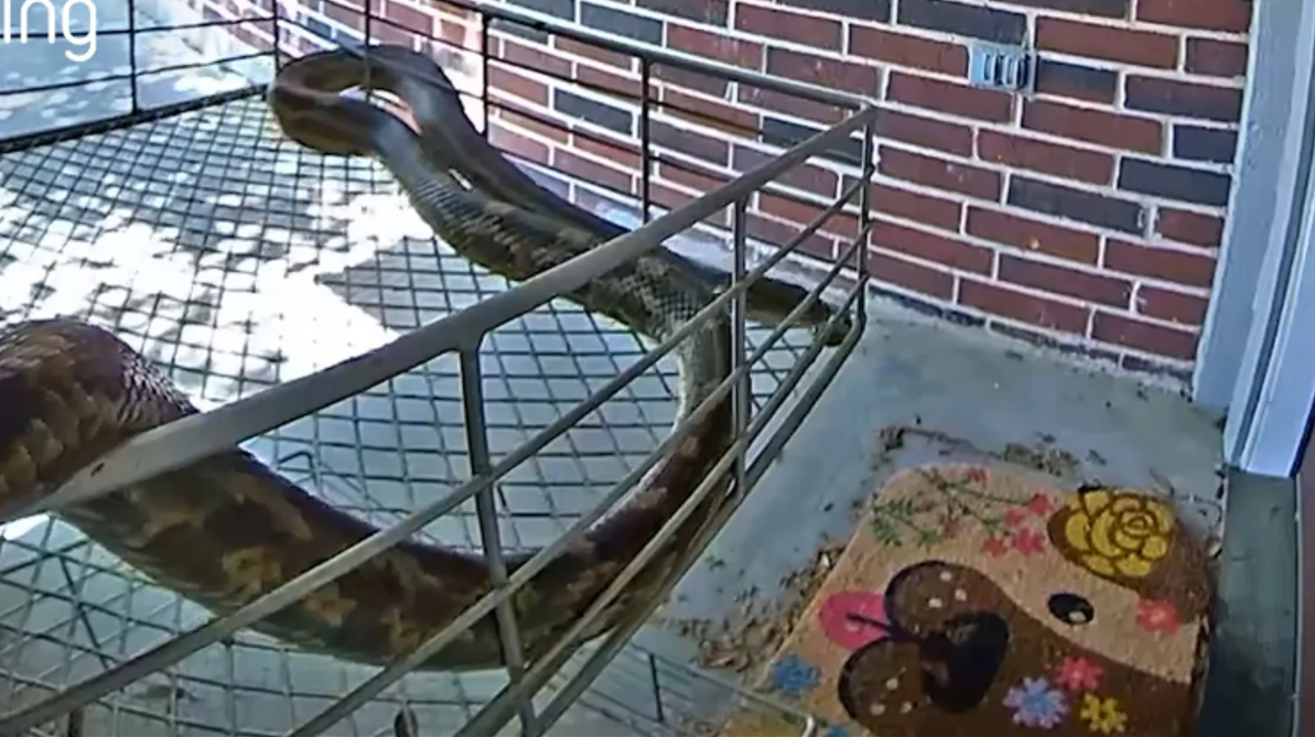 影片中可看到,一條巨大鼠蛇(Rat snake)在安娜的門前四處移動,一下爬到她的門上、一下在門前欄杆上游移。安娜表示,「我沒想到竟然會看到大蛇,這是我從未見過的景象,而我老公覺得很酷,所以我把影片分享在網路上」。