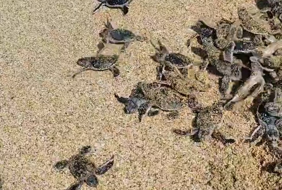 墾丁國家公園日前有綠蠵龜上岸產卵,約有100隻孵化的小海龜在沙灘上爬行入海。墾管處表示,是當地業者在6月7日早上9點多拍到小海龜爬向海洋的影片,有孵化的都回到大海,通常此現象會於5到10月間看到,今年已經不是第一次發現到海龜上岸產卵。