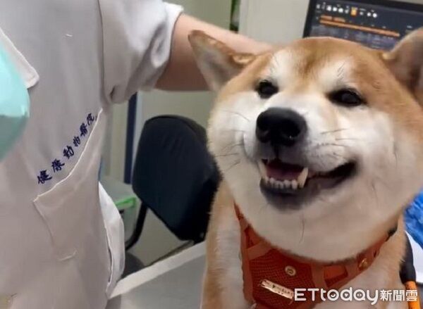 剛結束檢查的Wolly坐在診療台上,在獸醫的讚美聲越笑越燦爛,嘴角翹高高享受摸頭,最後就在「乖乖齁~Wolly最乖了齁~」的誇讚中一動不動,讓獸醫成功哄騙點藥。飼主維恩分享,Wolly是因為急性結膜炎,眼睛突然睜不開才去看醫生,但換自己來就完全不配合,「在家都要用偷點的」。