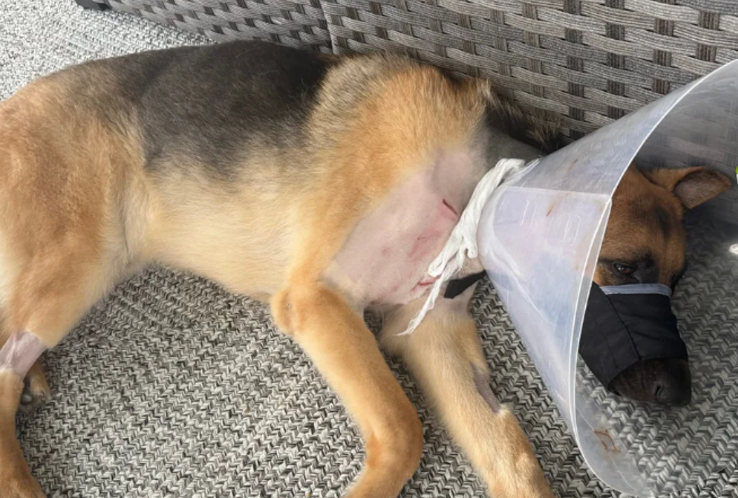 ▲德國牧羊犬遭鱷魚攻擊。(圖/翻攝自募款網站GoFundMe)