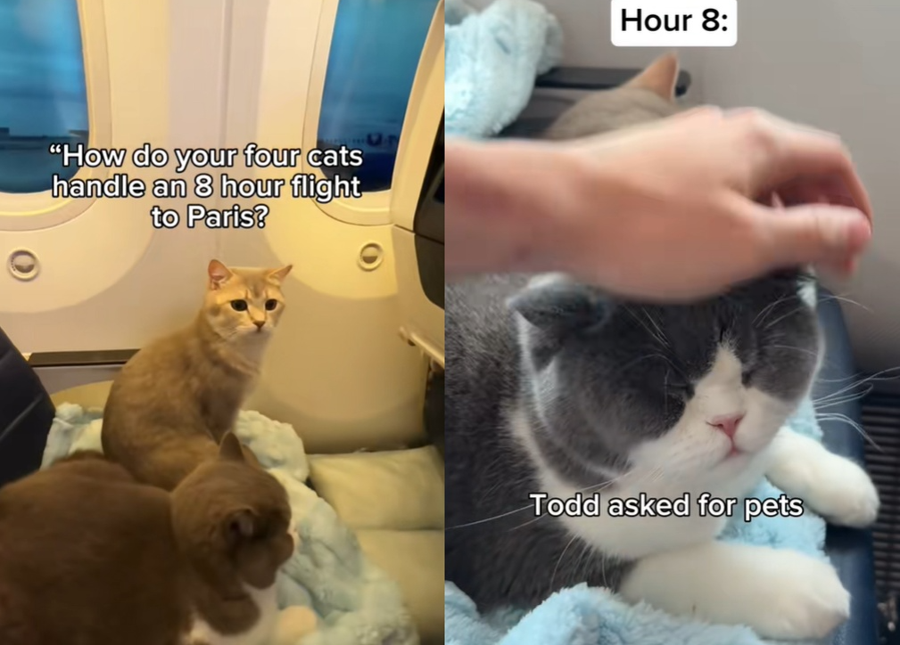 ▲男子時常帶著寵物貓一起出國。(圖/翻攝自TikTok/louieandtodd)