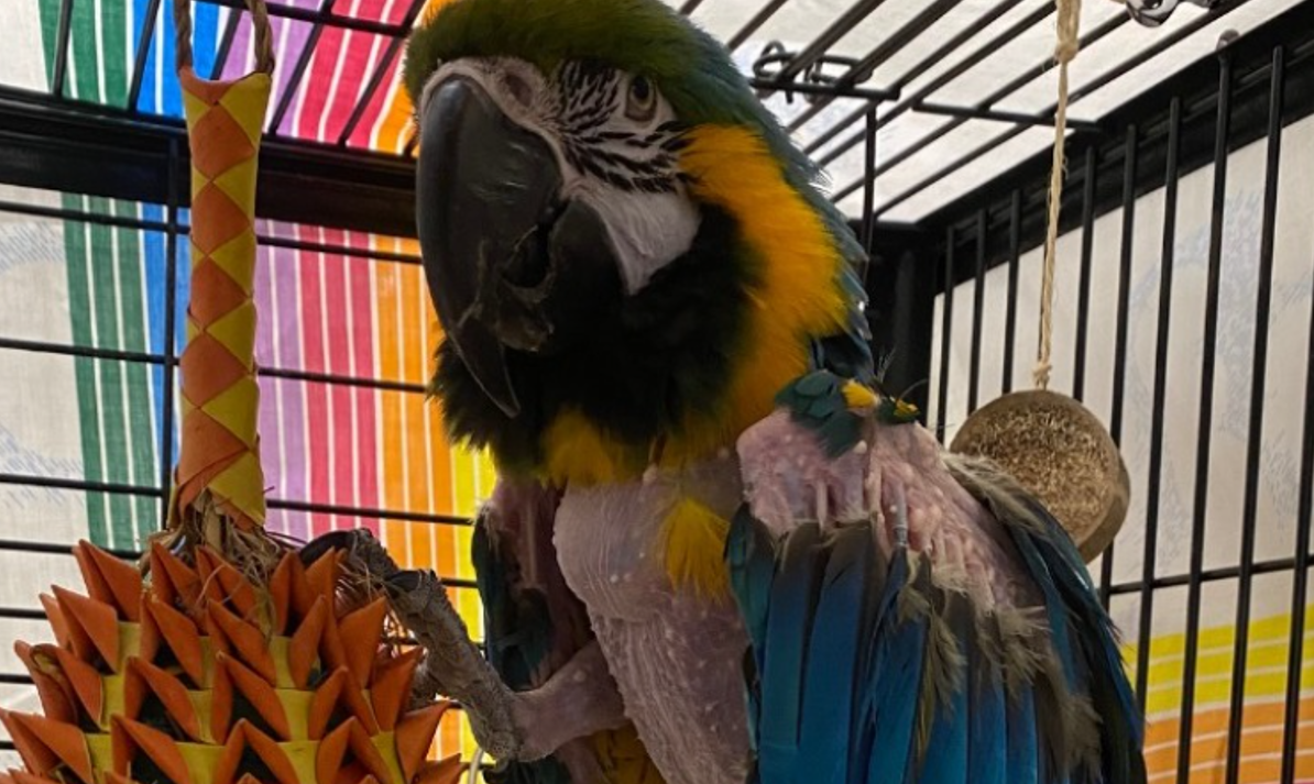 位於麻州瀑河城(Fall River)的動物收容所Forever Paws Animal Shelter,近來救援了一隻名叫亨瑞克斯(Hendrix)的藍黃金剛鸚鵡 (Blue-and-yellow macaw),這隻鸚鵡被前任主人飼養了20多年,工作人員判斷鸚鵡的年齡可能是30歲左右。