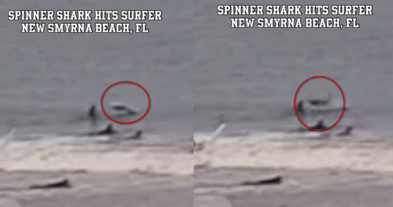 51歲男子凱伊(Darren Kaye)上月在新士麥那比奇市(New Smyrna Beach)當地海邊衝浪時,在海岸附近發現有鯊魚出沒,雖然如此他仍決定下水,並且全程對周圍狀況保持著警覺,沒想到一隻鯊魚突然飛到他面前。
