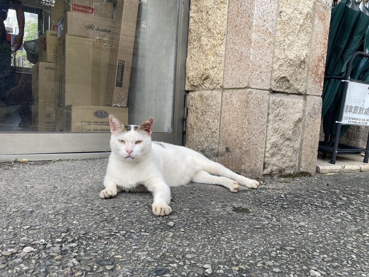 Yen Wei Li提到,當時保全室沒有人,「而且餵他?什麼鬼?」,沒想到對方告訴他「你大叫『妞妞!』,就會看到保全了」。Yen Wei Li這時才意識到,原來保全是隻貓,他照做大叫「妞妞!」,果然一隻白底虎斑貓出現,趴在地上乖乖地等罐頭,他不禁說,「這次難得的經驗也太可愛了」。
