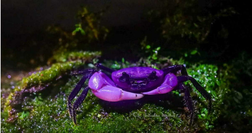 泰國國家公園野生動植物保育廳(Department of National Parks)近日公開一種罕見螃蟹,紫色甲殼類生物充滿一種「外星感」,而牠其實叫熊貓蟹,也是生態系統是否健康的重要指標,是一種半陸生螃蟹,以黑白相間花紋得名。