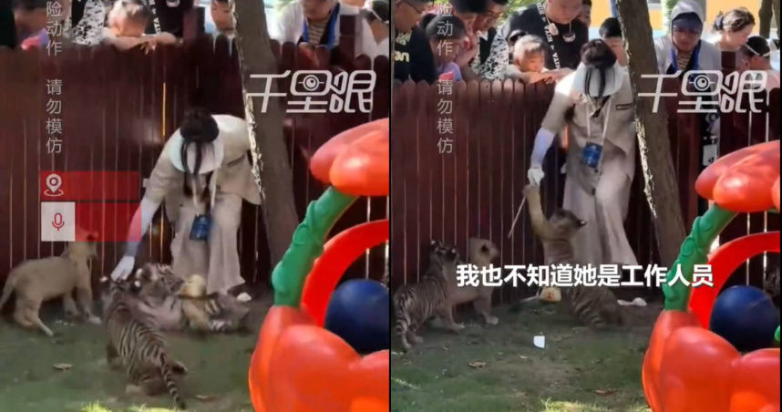 綜全陸媒報導,15日當天,一名身掛識別證的女子闖入幼虎飼養區直播,在鏡頭前多次對幼虎腳踢、棍打,甚至粗暴地抓起幼虎後頸將其甩開。相關畫面被網友錄下上傳網路後,迅速引發廣泛憤怒。後續園方於16日回應,證實該女子為園區工作人員,強調一般遊客不得進入圍欄,並承諾將對該員工行為進行處理。