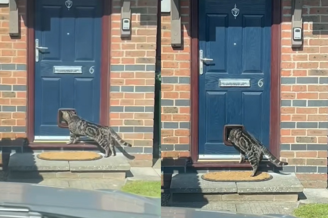 英國一名裝修工人幫客戶在大門裝上貓門,他特別守在門口,希望能拍到寵物貓第一次使用的畫面,等了一段時間後,一隻虎斑貓在門口打量了一會終於進入,他開心把影片分享給客戶,卻發現誤會大了。
