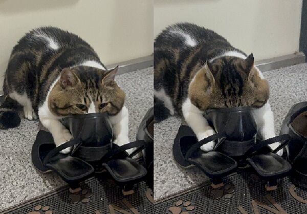 之後喵喵還努力想把整顆頭擠進鞋子裡,但理所當然沒有成功。飼主也透露牠是隻天生的「肌肉猛貓」,還曾經是這一帶流浪貓的老大,就連摸下去也都是實心的。牠吸皮鞋吸到「ㄎㄧㄤ」掉的畫面也在X上廣為流傳,至今已累積超過1840萬次點閱。