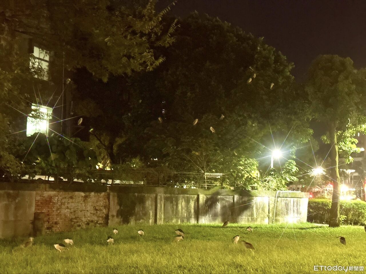 在都市中,生活著許多已經適應環境的野鳥。住台北的網友Miller飯後在信義區散步,居然在某處公園遇見一顆結實累累的「鳥樹」,枝幹上站著數十隻俗稱「南崁企鵝」的夜鷺,就連草地上都停滿鳥,似乎是在舉行某種秘密集會。
