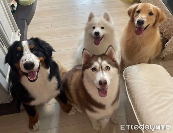 ▲四隻巨犬每天都讓媽媽感受到沉重的愛。(圖/Threads@liuliu_bay提供,請勿隨意翻拍,以免侵權。)