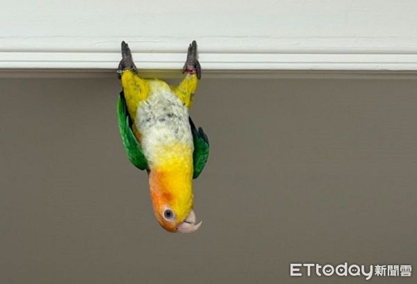 迪迪用小雞爪緊抓著牆邊,模仿蝙蝠表演「頭下腳上」,滿臉驕傲的跟主人炫耀自己強壯的腿腿與肌肉。迪迪媽媽分享,平時鳥寶就經常耍ㄎㄧㄤ,「喜歡兔子跳,會突然定格⋯」,在家兼職擔任襪子怪盜,被抓包還堅持跳跳逃跑,當天自己要帶迪迪回居住籠,牠往上飛嘴巴就一口叼住天花板邊緣的凹陷,「然後開始玩了起來,最後就像蝙蝠一樣倒吊著」。
