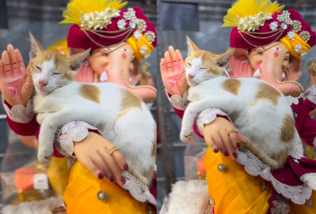 印度近來舉行象神節(Ganesh Chaturthi)期間,一隻毛茸茸的訪客意外成為焦點。畫面中可看到,一隻小貓竟然舒服睡在印度象神神像懷中,模樣看起來十分幸福,被網友大讚是今年最療癒畫面。