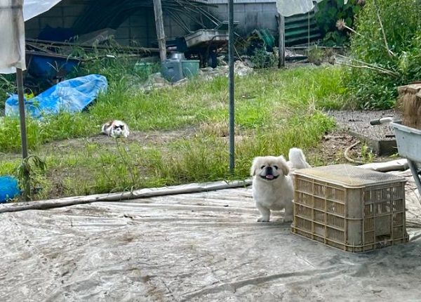日本一隻叫做小郝(ハオ)的北京犬,與主人和幾隻貓一起住在高知縣鄉下。這天牠跟飼主獲得許可,來到鄰居家的田裡玩耍,不知不覺間被住在附近的三花貓「盯上」了,趁著小郝玩得正開心,偷偷出現在牠的背後做出偷襲預備姿勢。