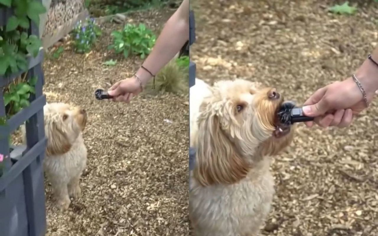 搶麥大作戰!最近一段狗狗受訪影片在網路瘋傳,畫面原本是主人拿著麥克風,準備假裝「小記者」問毛孩:「最喜歡花園的哪一部分?」結果話還沒說完,狗狗直接出手(正確來說是出「嘴」),一口叼走麥克風,現場瞬間傻眼,網友則笑到噴淚。