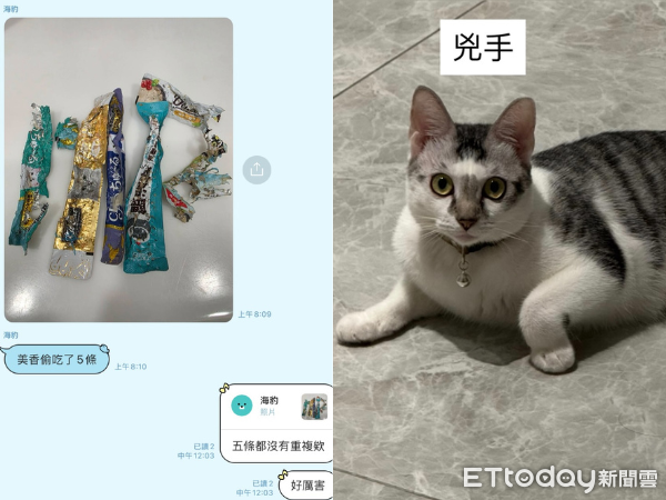姐姐笑道,其實美香不是第一次這樣偷吃,而是會經常「犯案」,只要是塑膠包裝的東西都被牠叼走過,遇到吃就變機靈的牠,還懂得只吃袋中的零食,將外包裝吐掉。後面為了防止美香偷吃,只好全部放進櫃子,不然就是裝在罐子或盒子裡。原本一星期能吃2條肉肉的美香,這次居然一口氣狂嗑5條,也因此被懲罰一周不能吃貓泥。
