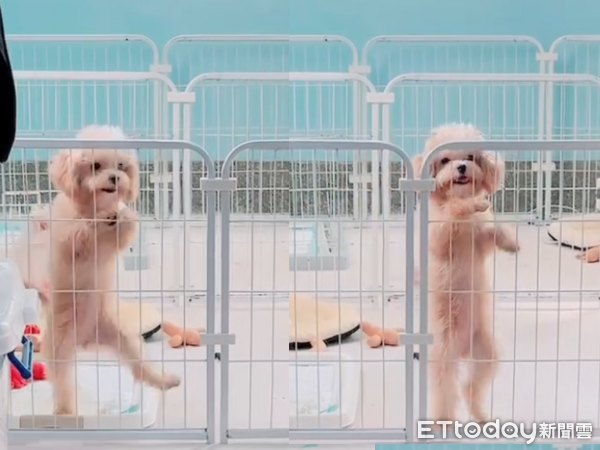 台中市9個月的瑪爾貴賓犬「麵包」正是電力滿滿的年紀,活力十足的牠出門看見「好朋狗」時,會激動的用雙腳狂跳,像是裝了彈簧一樣。在家想出柵欄玩時,會開跳「草裙舞」,左右移動配上小手的動作超有律動感。畫面雖然可愛,不過雙腳站立容易影響健康,目前正在積極訓練中。
