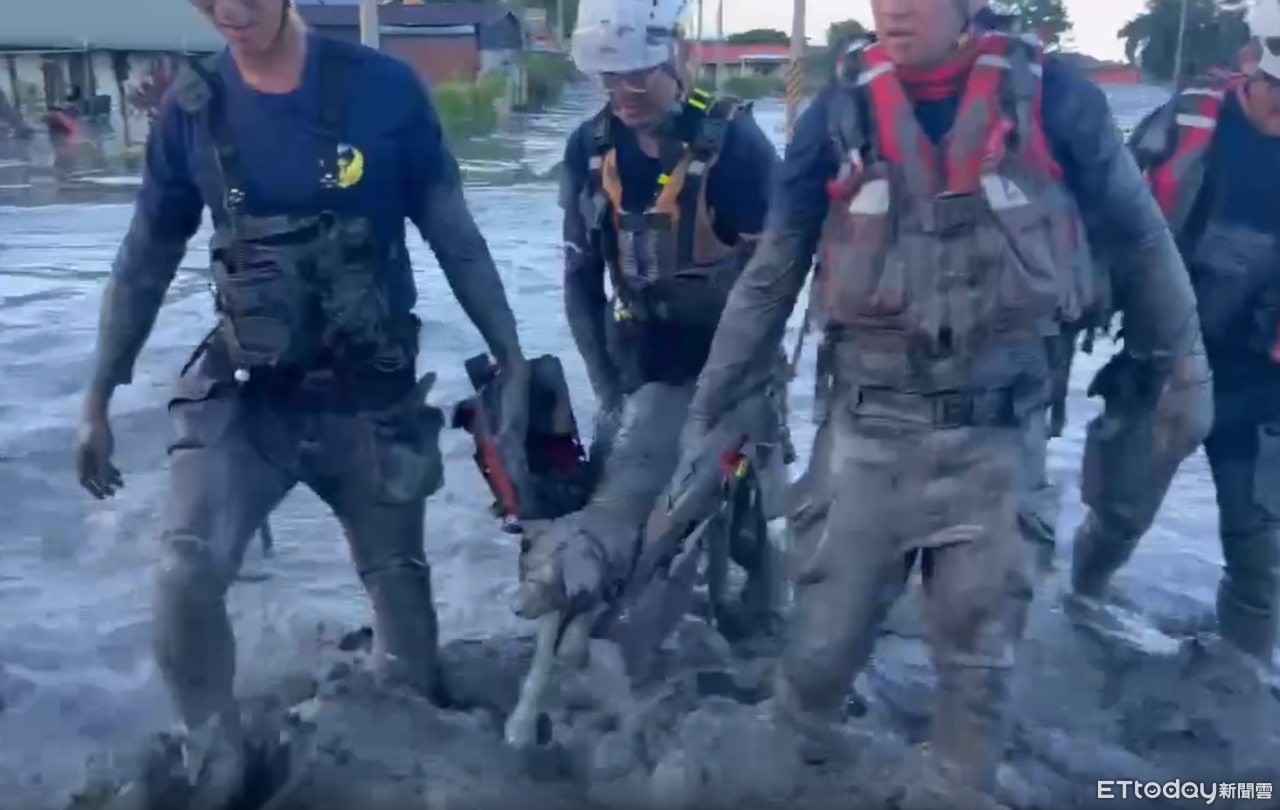 高雄市特搜大隊協助花蓮光復救災時,發現一隻深陷泥濘的狗狗,狗狗幾乎被掩埋,只露出一顆頭勉強呼吸,讓搜救隊員見狀趕忙將牠救出,沒想到淤泥實在太厚,拔了40分鐘才成功救援,大家協力救援狗狗的模樣令人動容。雖然狗狗疑似有吸入性肺炎,但好消息是狗狗掃到晶片,目前已經聯繫上飼主。