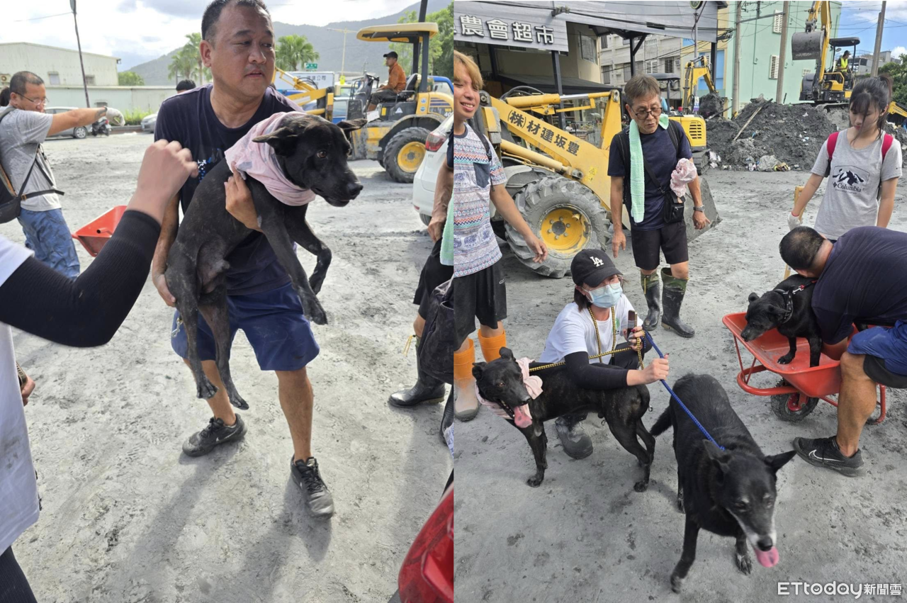 花蓮「快樂狗寵物旅館」老闆在災情後持續協助災區毛孩安置,得知劉阿嬤愛犬的處境後,28日親自前往營救。然而受地形破壞影響,車輛無法進入,加上狗狗堅持不走,最後老闆靈機一動,用阿嬤的衣服蓋住牠們的眼睛,才一隻一隻順利抱出,牽到車上帶回安置。