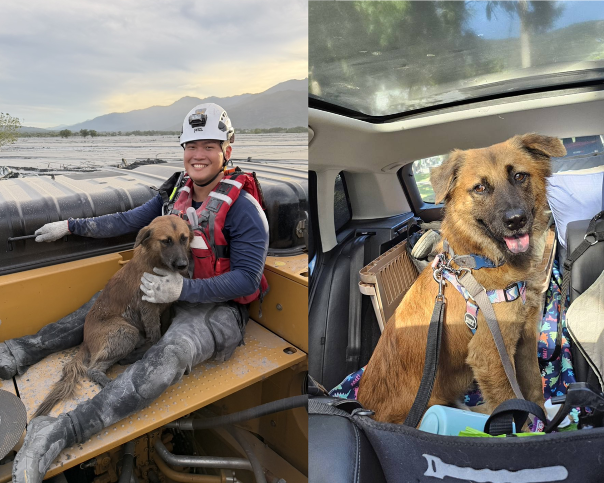 ▲特搜隊員救了追挖土機的狗狗,當時還沒想到他們彼此的緣分如此深厚。(圖/花蓮光復動物救援志工團隊提供)