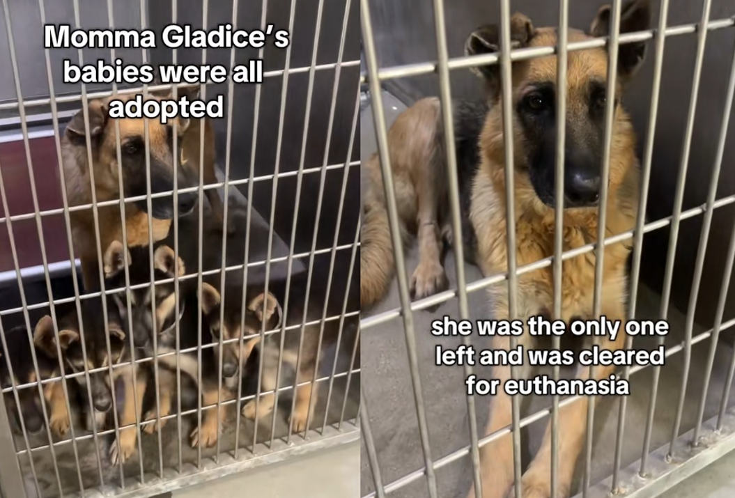 美國加州一隻叫做葛拉迪斯(Gladice)的狗媽媽,原本和4隻狗寶寶一起被送到動物收容所中,然而一周過去,4隻小狗都已經獲得收養,只有葛拉迪斯獨自留在籠中,從此變得比以前更加安靜、不開心,可憐模樣令志工不捨。
