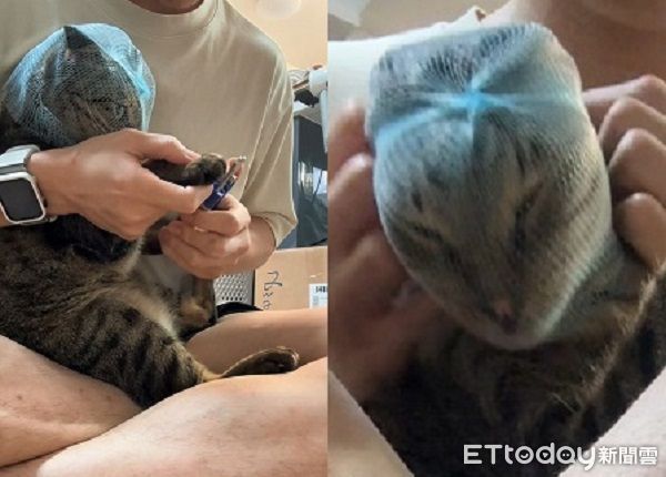 朵朵帶上濾水袋後,大腦先是當機了一下,似乎是在思考頭上是什麼鬼東西,發現指甲被剪掉後爆怒啃奴才的手,就算爸爸摸頭安撫也依然氣噗噗,後來更是直接掙脫頭套逃走。朵爸《ETtoday寵物雲》分享,雖然朵朵當下只是不爽想逃跑,事後也不會記仇,但如果沒做防護措施直接剪,「牠就會一直想掙脫、推我、咬我」。