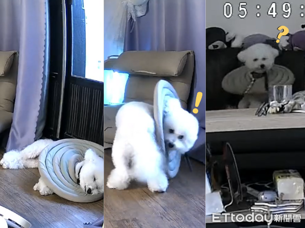 家裡還有誰?新北市5歲的比熊犬「毛比」自己在家睡覺,沒想到飄動的窗簾突然碰到牠的屁股,害牠被嚇得從美夢中驚醒。毛比不停的往後看,卻找不到是誰碰到牠,連忙躲上沙發「思考」,畫面中一臉問號的表情讓飼主笑翻。