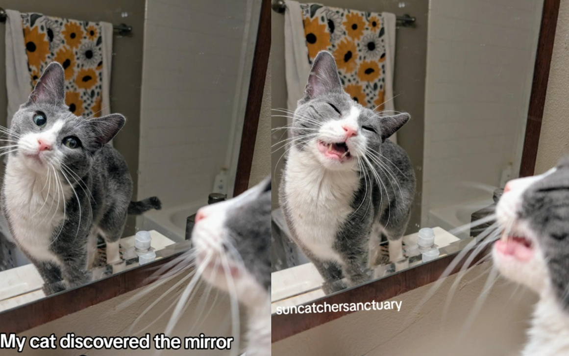 位於亞利桑那州鳳凰城的動物收容所Suncatcher Sanctuary,是一間專門為年長貓咪或是有特殊需求貓咪提供終身照顧的機構,收容所近來在網路上分享,一隻叫做Moose的小貓,在鏡子前的一系列照片。