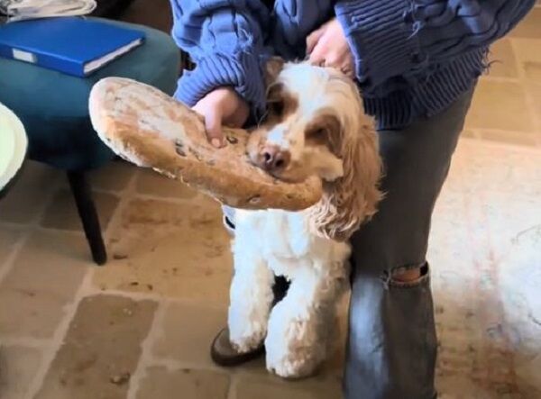 可卡獵犬羅尼(Ronnie)是隻貪吃的汪星人,這天牠趁家人不注意,把大家要吃的整條麵包偷偷叼走,被抓到後還非常倔強地不肯鬆口,誓死要守住剛到手的美食,就算主人拿香噴噴的零食誘惑,牠也依然不為所動。