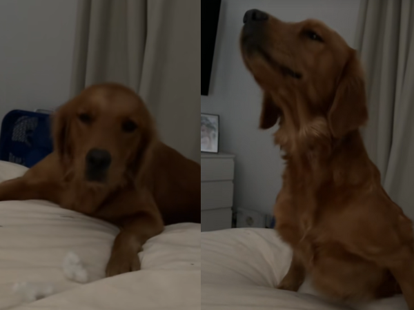 Samantha是美國田納西州的一位創作歌手,近期她收養了一隻3歲左右的黃金獵犬Pearl,這隻阿金之前從未睡過軟綿綿的床,所以當媽咪邀請牠一起睡覺時,牠總是沒自信,不知道該如何「爬上床」。Samantha也堅持讓寶貝練習,如今Pearl已經非常熟悉動線,多虧主人給予無條件的包容與耐心。