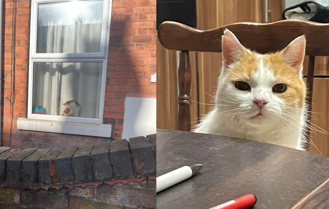 國外一名女高中生上學時路過鄰居家,覺得窗戶中的橘白貓看起來和自家貓咪Bob好像,覺得有趣的她打算拍下照片和家人分享,沒想到貓咪一抬頭和她四目相對,驚覺這隻貓就是Bob。