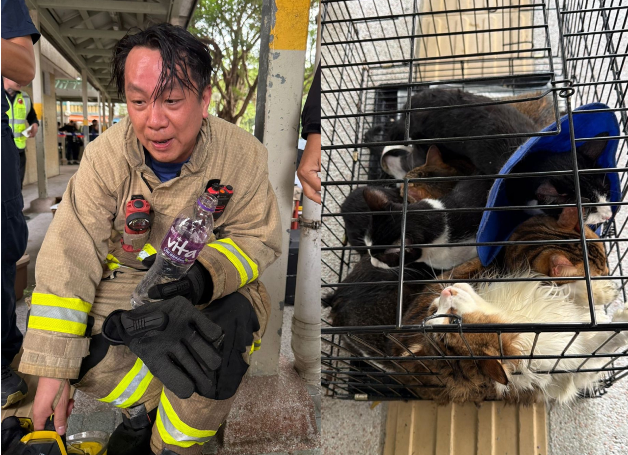香港宏福苑惡火延燒7棟樓,造成重大傷亡,除已知至少55人不幸罹難外,許多受困家中的寵物也陷入險境。一名消防員在19樓發現受困的9隻貓與1隻狗,不斷折返只為救出所有毛孩,他滿身濕透、臉部通紅的身影讓無數網友感動直呼:「真正的英雄!」