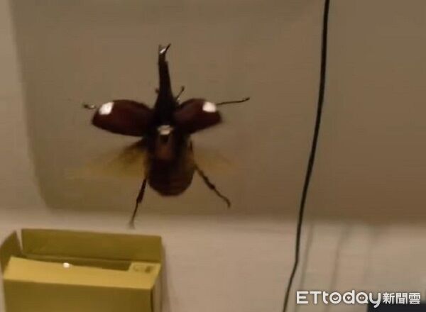 這隻姬兜蟲非常穩定地升空,目標則是天花板的燈泡,雖然過程中稍微有些跌跌撞撞,但牠還是順利完成兩次起降,回到原地後身體還微微上下起伏,似乎是在為剛剛的劇烈運動大口喘氣。然而牠飛行時的姿勢,加上格外清楚的振翅聲神似「飛天巨強」,就連飼主本人都幽默表示,「牠是比較帥的蟑螂」。