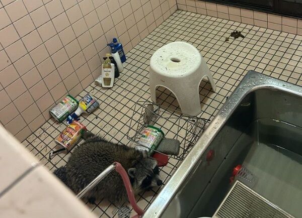 這隻誤闖民宅的浣熊的身材圓滾滾,看起來就像是長了腳的小瓦斯桶,由於網友家的浴室天花板不太牢固,讓偷偷鑽進梁柱縫隙趴趴走的牠掉下來。ポポ看見現場一團糟後也很苦惱,在自己的X帳號發文求救,「請問有人知道怎麼趕走牠嗎?」,幸好他打開窗戶後浣熊就自行離開了。