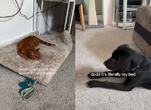 英國一隻叫做Guinness的橘貓,明明自己也有貓窩,但偏偏最愛霸占黑狗好兄弟Goose的軟墊。這天牠發現自己的座位又被搶,雙方只好展開一場激烈的攻防戰決定所屬權,而這一切都被在旁邊看熱鬧的媽媽錄了下來。