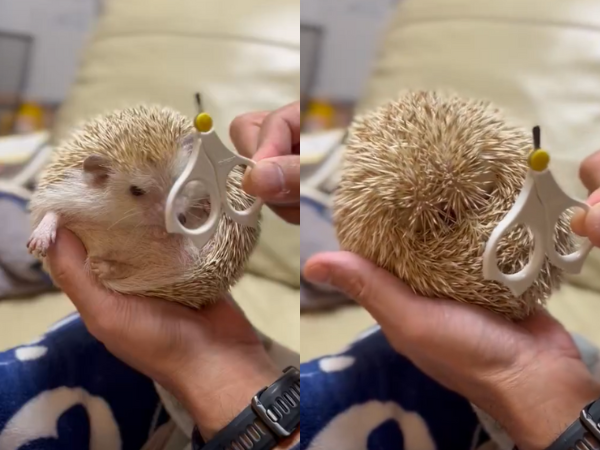 日本神奈川縣有一隻1歲的刺蝟「ぽん太」,媽咪經常在X上幫牠記錄生活點滴。這天當家人把牠捧在手心時,沒想到牠一看見指甲剪就害怕的縮成一顆球,感覺超級委屈。圓滾滾的呆萌模樣迅速爆紅,引來不少網友留言直呼「被融化了」,影片的觀看次數高達90萬次。