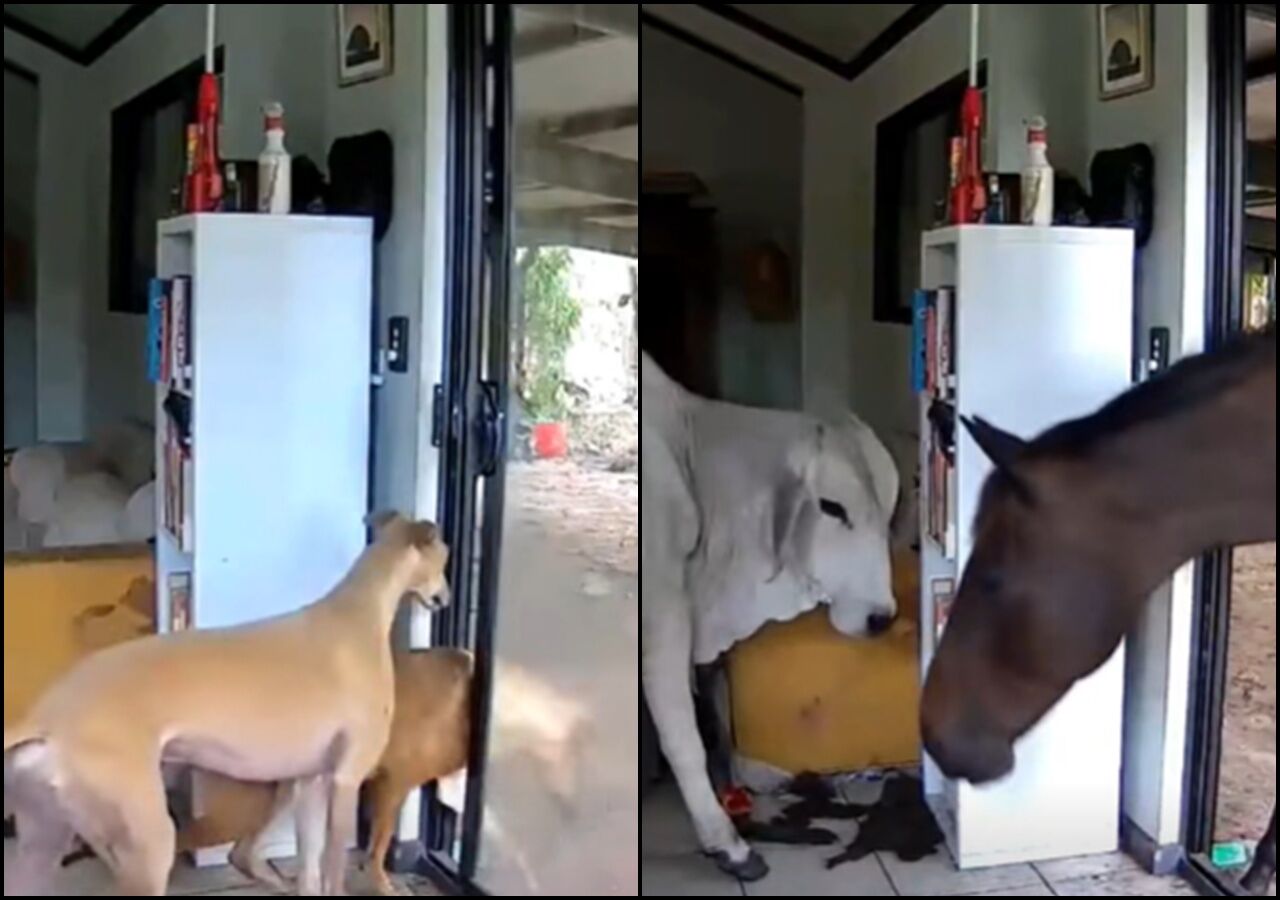 澳洲北領地議員馬凱(Andrew Mackay)近日分享了一段特別的家庭趣事,他某日回家時驚訝發現,自家寵物狗竟讓一頭寵物牛和一匹寵物馬進了客廳,瞬間把家裡變成了動物樂園,寵物們的奇妙冒險也被寵物監視器完整記錄,讓他哭笑不得。