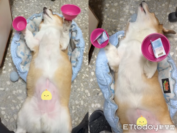 新北市7歲的柯基犬「島路」在家能睡超熟,牠睡著時總會翻著肚肚、四腳朝天,可以維持同個姿勢很久。這天姑姑突發奇想,在牠的腳腳上放兩個碗,沒想到島路居然穩穩地拿著都不會掉,彷彿在才藝表演,影片共高達10萬次瀏覽數。