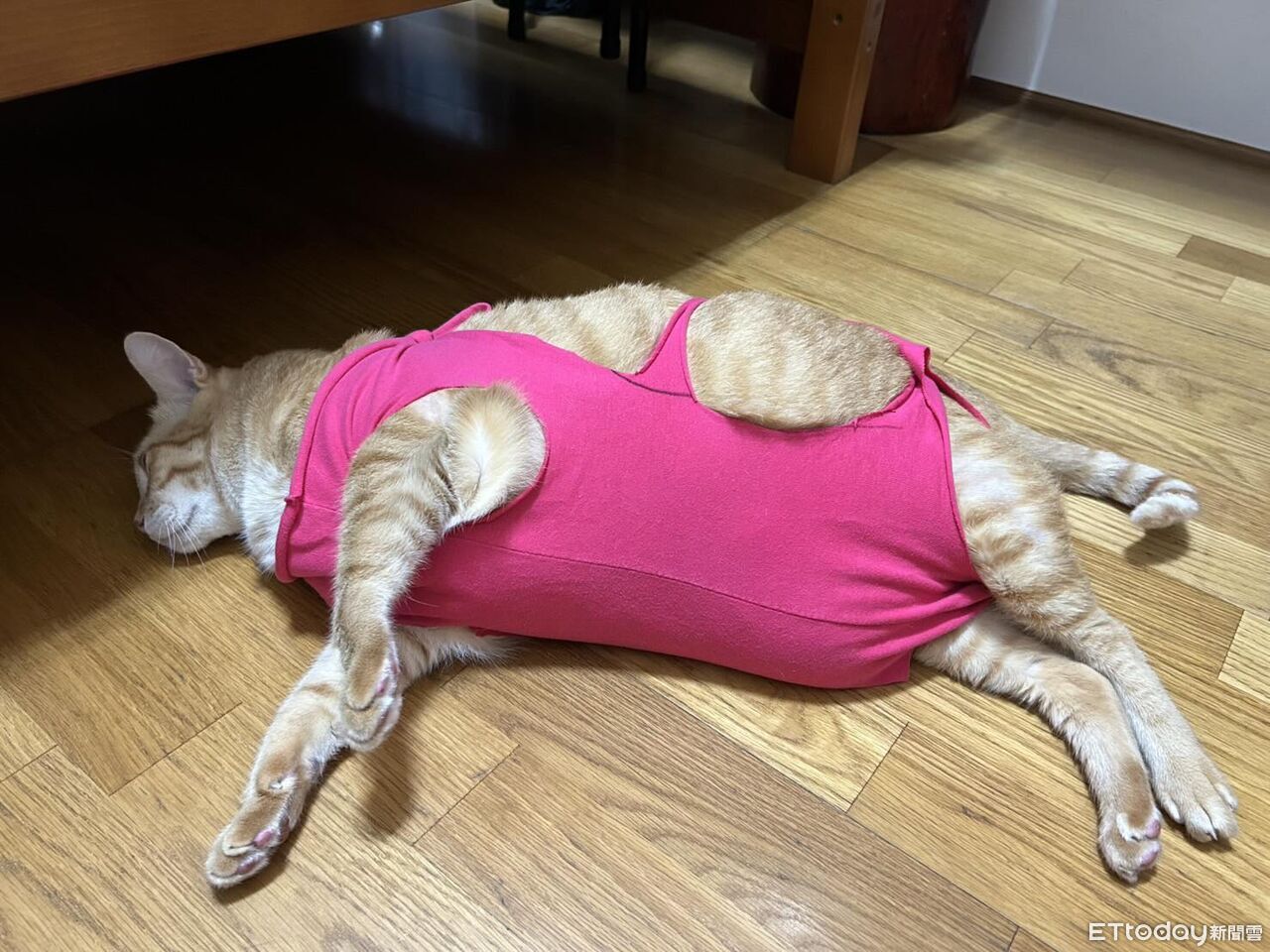 ▲因為過度舔毛,所以需要穿防舔衣避免肚子受傷。(圖/Threads@hsing_ying_tsai提供,請勿隨意翻拍,以免侵權。)