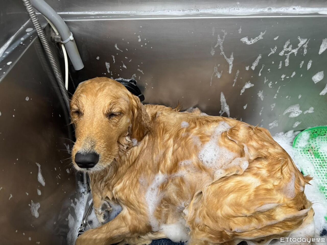 黃金獵犬「啦咪」是隻可愛的1歲小女生,這天媽媽帶牠去寵物沙龍洗香香。沒想到啦咪邊洗眼皮越來越重,舒服到連泡泡都還沒沖就躺在水槽裡打瞌睡,全身濕答答眼睛舒服到閉起來,被叫醒時還滿臉睡眼惺忪的看著美容師。