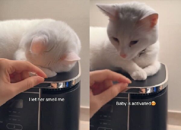 國外一隻名叫Maya的白貓天生耳聾,如果鏟屎官需要叫牠起床,需要用「氣味辨識」才會有反應。這天媽媽在從外面回家,就發現牠窩在氣炸鍋上睡得正香,就算刻意發出噪音也完全無效,但聞到熟悉的氣味就瞬間開機歡迎奴才。