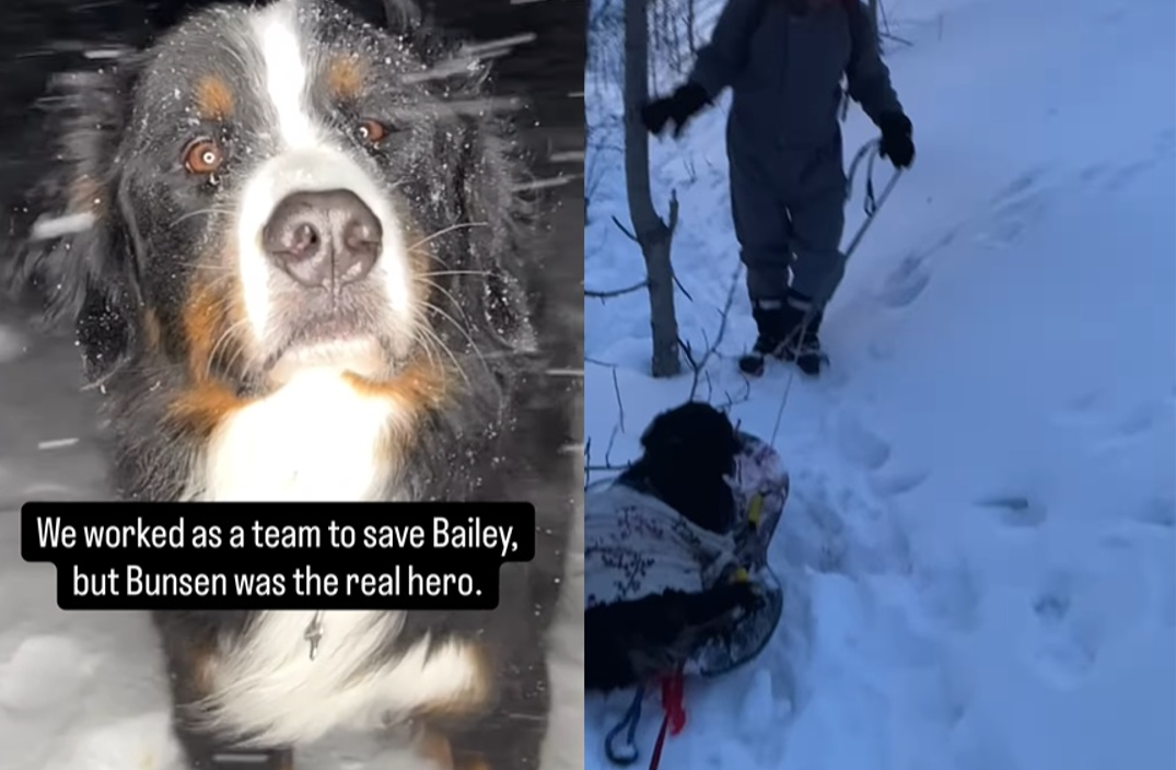 國外一隻叫做班森(Bunsen)的伯恩山犬和主人在雪地散步時,突然不對勁暴衝起來,完全不理會主人指令,主人辛苦在後面追了一段路後,沒想到雪地中發現一隻被凍僵的垂死狗狗,英勇行為讓牠在網路上被大讚。