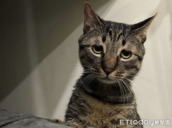 大汗站在沙發上微微歪著頭,神情嚴肅又帶點警戒,專注又困惑的眼神似乎是在懷疑剛剛的地震是不是奴才搞的鬼,又像是在焦慮為什麼大家都還待在家裡,而不是去安全的地方避難。飼主表示,大汗是天生長得比較憂國憂民,有點迷離的眼神則是眼瞼沾黏造成,經過獸醫也確認不會影響視力,「可吸抱撸戳揉,重點牠是家裡精神最好的!」
