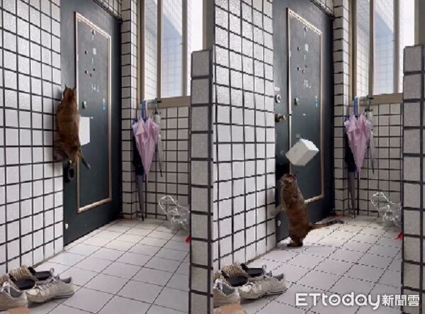 萌貓「貢糖」因為太愛玩門把手,兩位爸媽只好用盒子與掛勾自製防護罩,防止主子擅自跑出去遇見危險。正當兩人得意洋洋認為自己贏了,結果麥茶轉頭一個大跳,就把奴才精心打造的防護設備拆掉,囂張的表情直接把氣氛拉到最高。