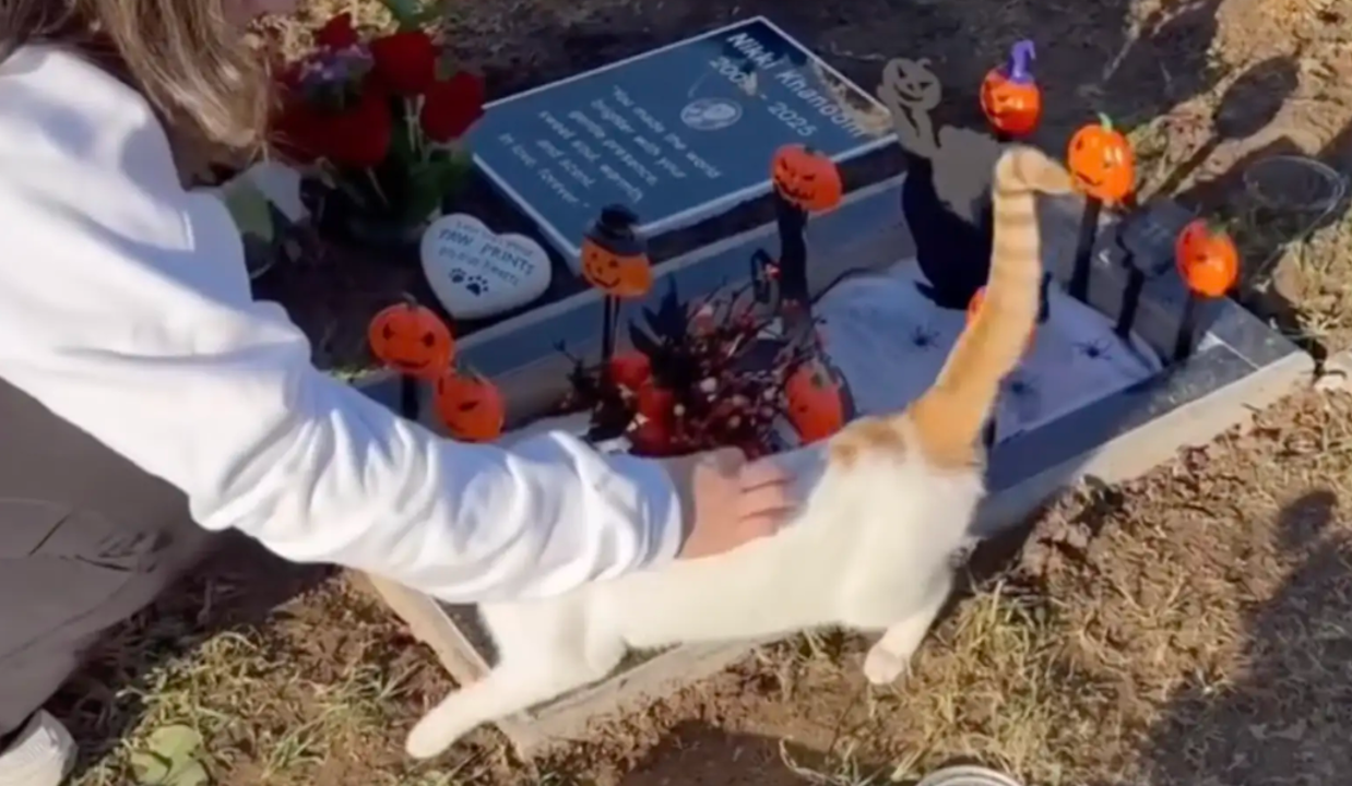 來自加州的女子菲菲(Fifi Furrha)在網路上分享,她與丈夫里姆(Kareem Khalil)帶著孩子們一起去寵物墓園悼念幾個月前離世的寵物貓斯凱(Skye),由於當時剛好是萬聖節,所以她帶了許多飾品來裝飾愛貓的墳墓,氣氛正感傷時,突然出現一隻陌生小貓。