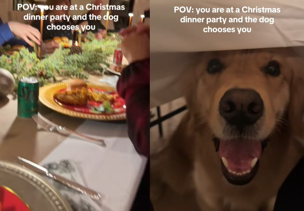 這名網友在TikTok上分享,她上月參加家族聖誕聚會時,面對滿屋的賓客,一隻名叫Ranger的黃金獵犬卻一下子就做出選擇,跑到她面前露出大大的笑容,期待能獲得零食。
