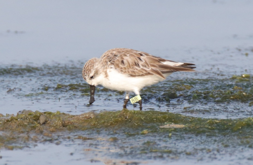 ▲左腳配戴綠色足旗88號的琵嘴鷸,為多年來反覆使用將軍濕地的熟悉個體,顯示高度棲地忠誠度。(鳥友李正峯提供,下同)